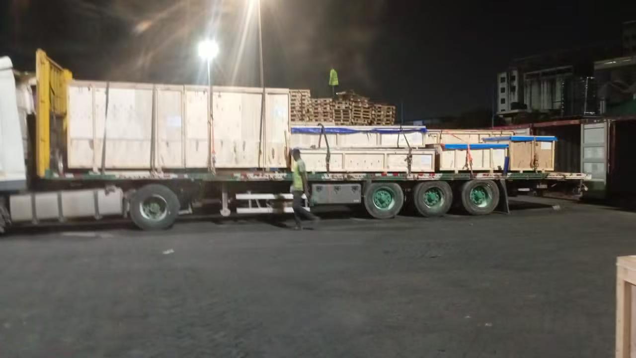 Bei der Ankunft der Ware im Hafen von Tema, Ghana, wird unser Das professionelle Team hat den Empfang und die Inspektion umgehend abgeschlossen. Für große Leistung Um dies zu verhindern, führten wir eine vollständige Verzurrung und Verstärkung durch Verschiebung während des Landtransports. Alle Waren waren vollständig mit abgedeckt Wasserdichte laminierte Planen, um rauem Wetter und Feuchtigkeitsschäden zu widerstehen. Jedes Transportfahrzeug war mit einem Standard-Quittungsformular ausgestattet Rückverfolgbarkeit und Verifizierung des gesamten Prozesses.